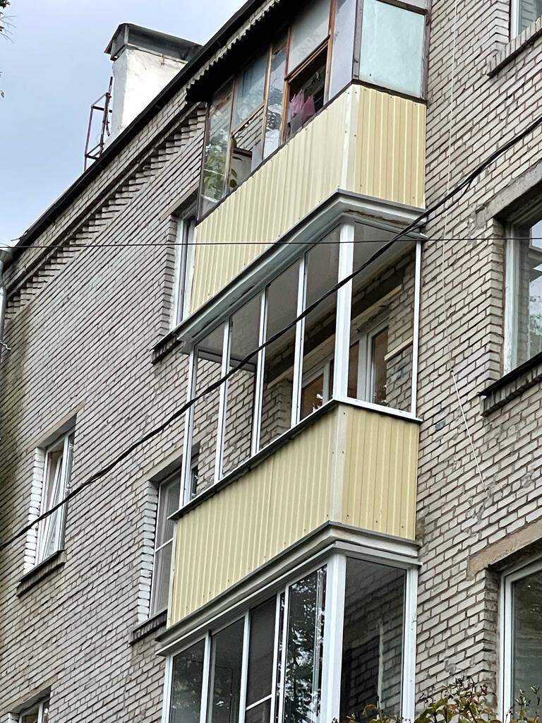 Отделка и остекление П-образного балкона без утепления, в кирпичном доме
