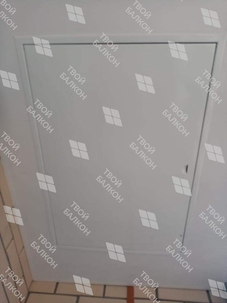 В данном объекте выполнено решение по установке потайных люков для пожарной лестницы, в полу и в потолке. Отделка потолка выполнена панелями ПВХ, полы - линолеум..