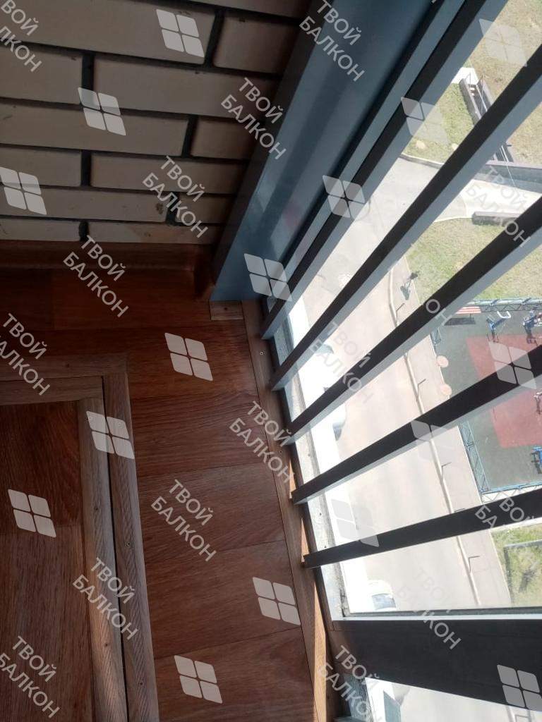 Отделка пола и потолка на балконе в кирпичном доме индивидуальной планировки: отделка потолка выполнена панелями ПВХ, полы - линолеум.